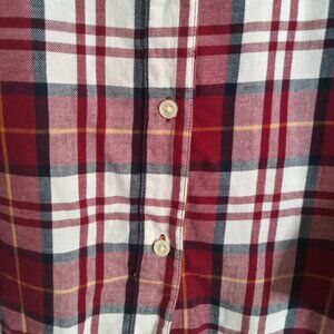 This Old Navy Boyfriend Shirt in size XXL is a cozy and versatile wardrobe staple. Featuring a classic red, white, and navy plaid pattern with a hint of mustard, this shirt offers a relaxed oversized fit that’s perfect for layering. Designed with a button front, collared neckline, chest pocket, and rounded hem with side slits for easy movement.