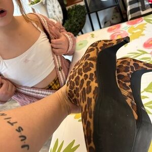 Old Navy size 8 animal print ankle booties heels