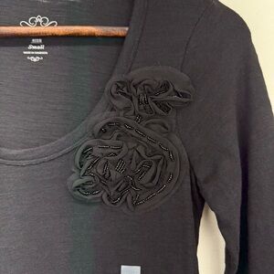 Old Navy size Small Women’s Black Beaded Floral 3/4 Sleeve Top NWT