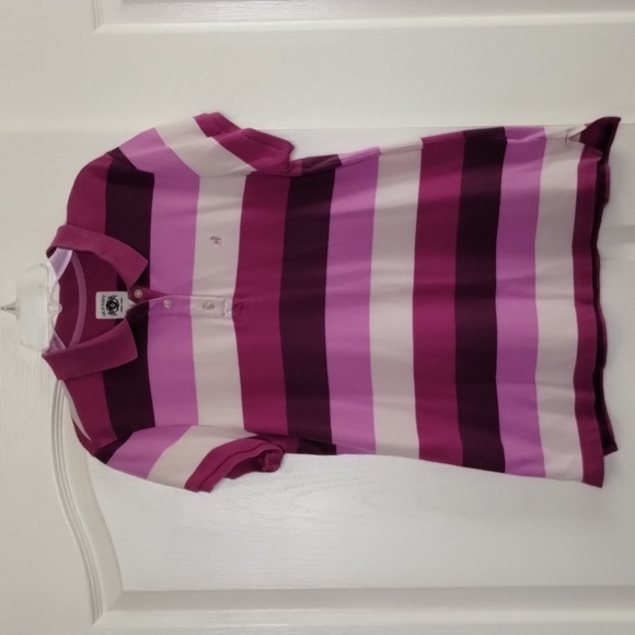 Old Navy size large graphic stripes pinks and purple athletic prep polo top