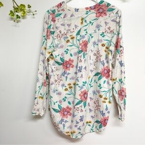 Old Navy size medium tall, off-white with colorful floral print in good condition, care tags were removed for comfort.