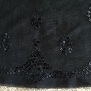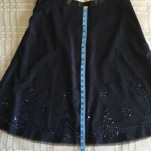 Sequin detailing along hem. Navy. Low waist, Shell 100% polyester, lining 100% polyester