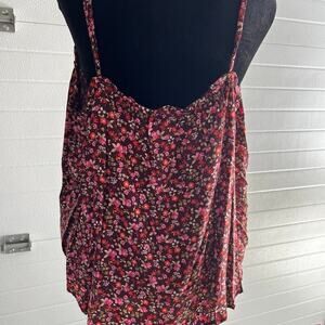 Old Navy women’s size L adjustable spaghetti straps cami top. Dark maroon with shades of pink and orange floral print. 100% rayon. Full and flowing.
