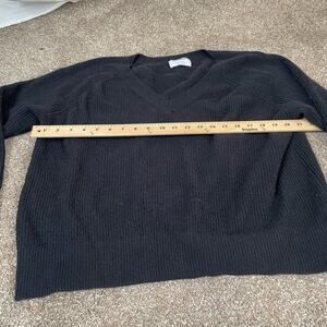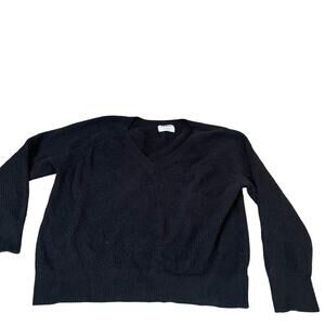 Old Navy sweater chunky knit ribbed black V- neck cotton blend staple piece SZ L