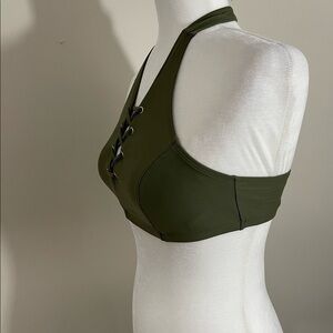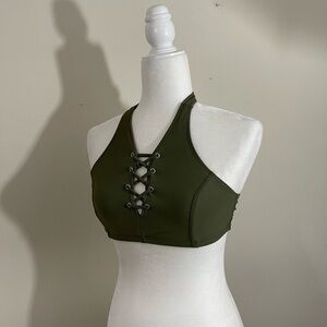 Old Navy sz sm swim top in olive green like new with lacing on the front