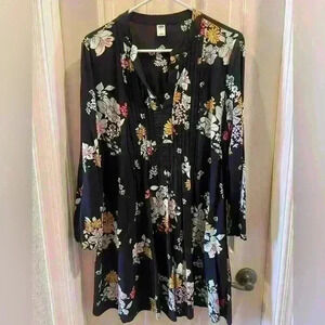 Old Navy floral print tunic dress. Worn one time. Floral print on black. Pleated top gives great detail. Perfect for fall season with boots or leggings. Size Large.