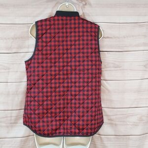 Old Navy vest red black check print quilted full zip pockets ribbed collar S