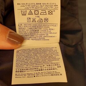 Quilted with ribbed collar, full zip closure, 2 slant pockets. Acrylic, polyester.