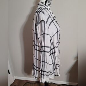 Really nice shirt. Excellent condition. Made with all rayon materials. Lightweight and flowy. Feels super soft. Tag says size 2X. Pic with model is not exact shirt but will give an idea of look and fit.