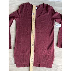 Old Navy womens V Neck tunic sweater knit top Maroon Red Heather size XS NEW