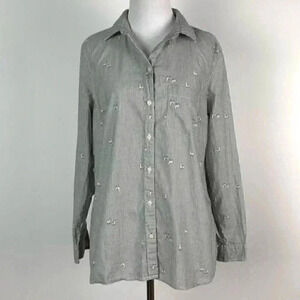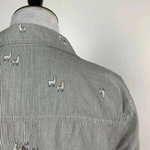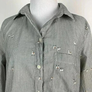 Old Navy womens top size M white gray alpaca llama the classic shirt button down graphic striped