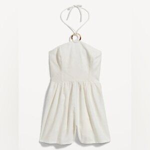 Old Navy women's white linen blend O ring halter summer beach romper in size XXL