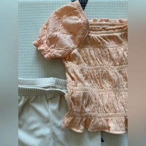 Old Navy|Baby girl short sleeve Peach Top with ruching and Cream Pants•••12-18m