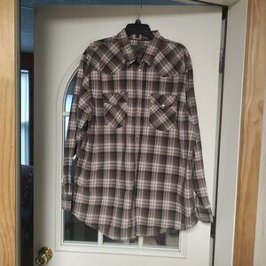 Old Navy long sleeve pearl snap shirt size men's XXL. It is brown plaid great condition.