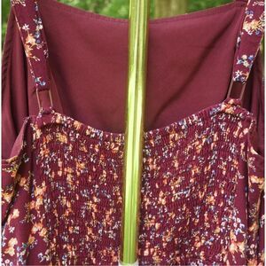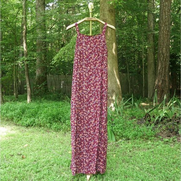 - Cute burgundy red spaghetti strap square neck smocked stretch long slim midi maxi dress with side slit by Old Navy