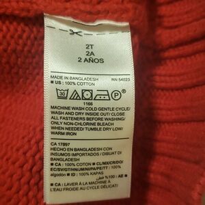 This rib knit sweater is 100% cotton. It is made by Old Navy and is red.