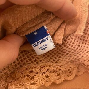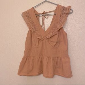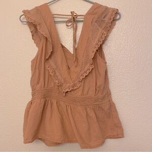 Old Navy Flutter Sleeve Crochet Lace low Tie-Back blouse Top peachy pink M