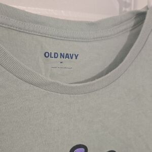 This Old Navy tee features a vibrant graphic design on a soft green base, accented with yellow tones. Crafted from comfortable cotton, it offers a classic crew neck and short sleeves, perfect for casual wear.