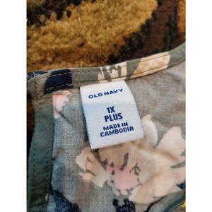 Old Navy Jumpsuit Women's 1X Green Floral Wrap Front Bell Sleeve Wide Leg