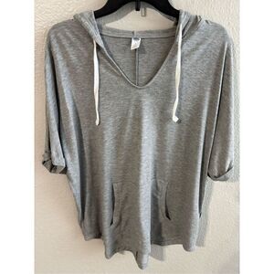 Old Navy Light Weight Gray Hooded Pullover Kanagroo Pockets Cuffed Sleeves Excellent Condition Size Large