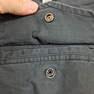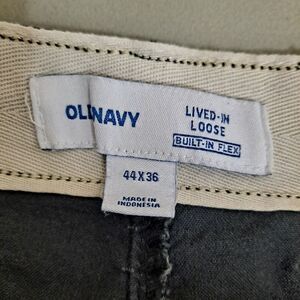 Gray, size 44/36. Classic 5pocket zip fly front design. Back pockets have a flap that snaps. Built-in flex.