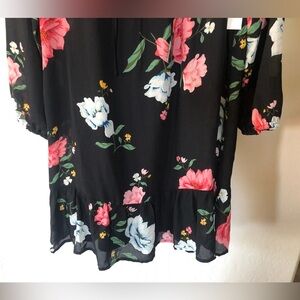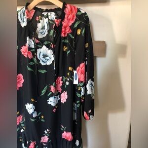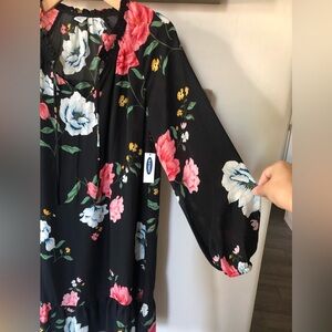 Old Navy|NWT black floral chiffon long sleeve dress,ruffle hem•••Medium