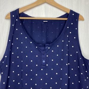 Navy Blue & White polka dot tank top from Old Navy. Has a front tie detail. Size XXL