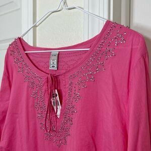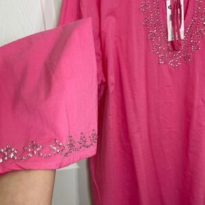 Old Navy Pink Long Sleeve Cotton Mini Sequins Scoop Tie Neck Tunic Top NWT 1X