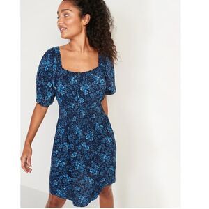 Old Navy Puff-Sleeve Waist-Defined Floral-Print Smocked Mini Dress Size XS