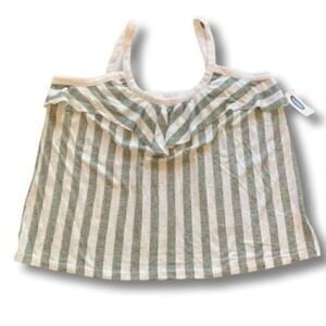 NWT Old Navy striped Tank in sage green and white with ruffle detail in the front.
