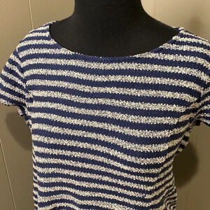 Old Navy Small Maternity Dress White/Blue Stripes Knit Cotton/polyester blend. Short sleeve.