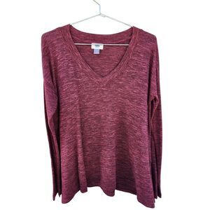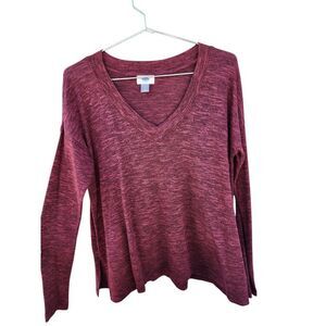 Old Navy V-Neck Sweater Marled Burgundy Stretch Long Sleeve Womens Size S