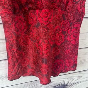 Old Navy Vintage Y2K Red Floral Silk V Neck Tank Top
