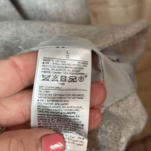 Old Navy Women’s Gray Suit Jacket Blazer Wool Blend, 50% Wool, 1 button with 2 faux pockets size large Approximate Flat Lay measurement Shoulder 16” Chest 20” Length 27” Sleeve length 24”