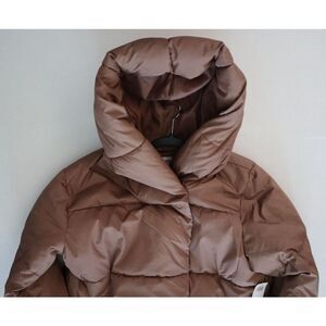 Old Navy Women's Sz M Brown Water-Resistant Quilted Long Hooded Puffer Coat