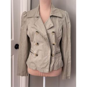 Adorable Old Navy double breasted jacket/blazer in size M. Stretchy cotton makes for a great fit. Super cute styling details. Faux front pockets. The color in the photos can be deceiving. This is a faded dusty green. See pics for measurements and condition. EUC!!