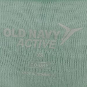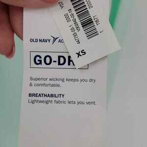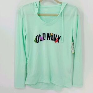 Cute Old Navy top go dry. Light green hooded breathable fabric by Old Navy extra small. There is a small little hole in the side I did note it in the pictures it's being sold as is, but it is new with tax. Consider making a bundle and getting even better deal.