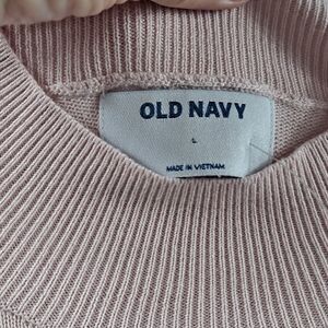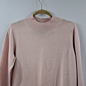 Pale pink, size large. L9ng sleeves, mock neck sweater. Very soft and a great basic! MEASURES 19" pit to pit, length is 27".