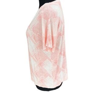 Old Navy patterned short sleeved tee, size XS. Super soft, 100% viscose. Crew neck, shades of coral and white. Approximate measurements are pit to pit 19”, length from shoulder approximately 22”.