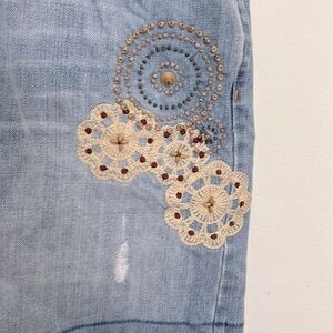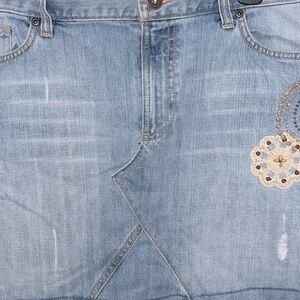 Old Navy’s Jeans ultra low waist stonewashed boho distressed frayed mini skirt. Skirt is in great condition.