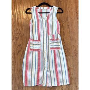 Old Navy striped linen blend pocket front dress small