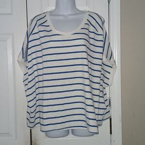 Old Navy white royal blue striped short sleeve shirt Sz XXL NWT