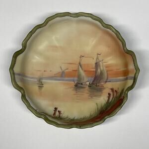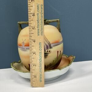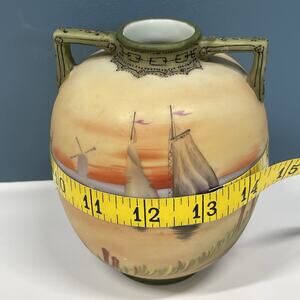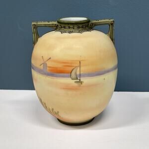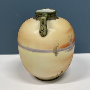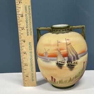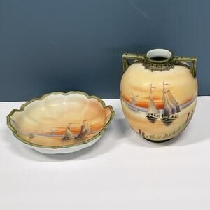 Old Noritake Handpainted Vase & Dish Sailing Ship Windmill Japan