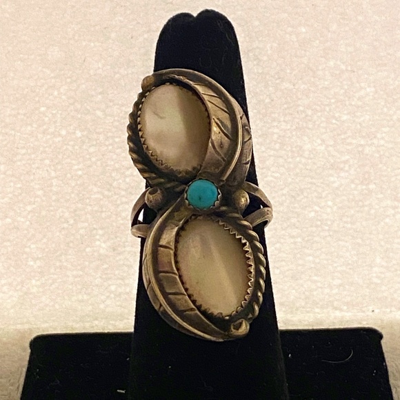 Old Pawn Mother of Pearl and Turquoise Ring
