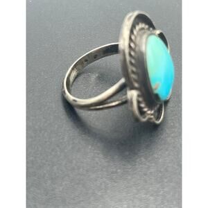 Old Pawn Native American Navajo Sleeping Beauty Turquoise Sterling Ring sz 7.25
