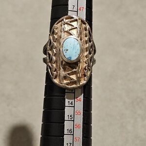 Old Pawn Turquoise c.1950s Navajo Sterling Silver Ring Size 5.5, 6.8 grams