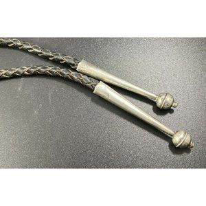 The pendant portion of the piece is in good condition and 925 measures about 2 1/8”x 2 1/2”. The ends are also sterling. The leather portion is frayed and worn however still in tact see photos. The piece is stamped Bennett Pat pending on back.