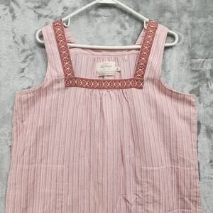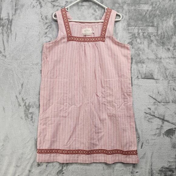 Old Ranch Dress Womens L Pink Embroidered Striped Sleeveless Allegra Pockets