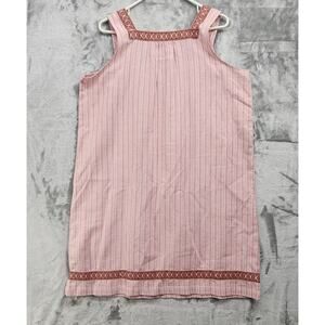 Old Ranch Dress Womens L Pink Embroidered Striped Sleeveless Allegra Pockets Casual Cottagecore Peasant Boho Apron