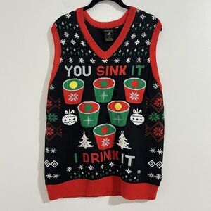 Old River Ugly Christmas Sweater Vest Men's M Beer Pong You Sink It I Drink It